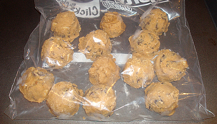 Next time you make a batch of your favorite cookies, form them into the correct size on a cookie sheet lined with baking parchment paper. Place the tray of cookies in the freezer for about an hour or as long as they take to set into a firm frozen state. Take them off the cookie sheet and put them in a zipper plastic bag so they are not touching. Keep them in the freezer until you are ready to bake them.