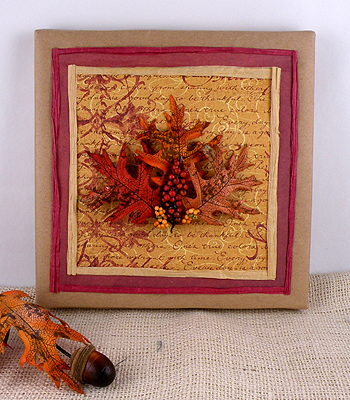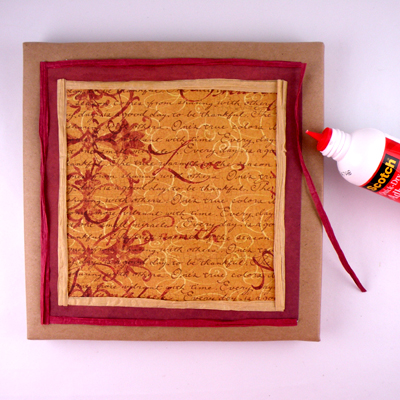 Autumn inspired elements and fall tones create a beautifully decorated gift design perfect for any occasion. Scotch® Quick Dry Tacky Glue easily secures fabric leaves to the gift to add an ornamental accent. This is my latest design I created for 3M/Scotch Brand.